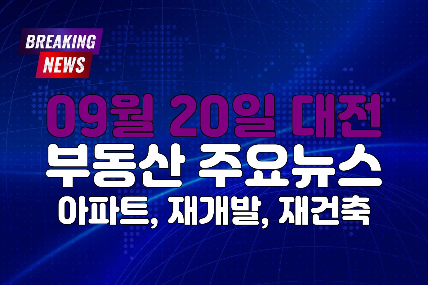 25년 09월 20일 오늘의 대전 부동산, 아파트, 재개발, 재건축 관련 뉴스 - 발행일시: 25년 09월 20일 07:09:56
